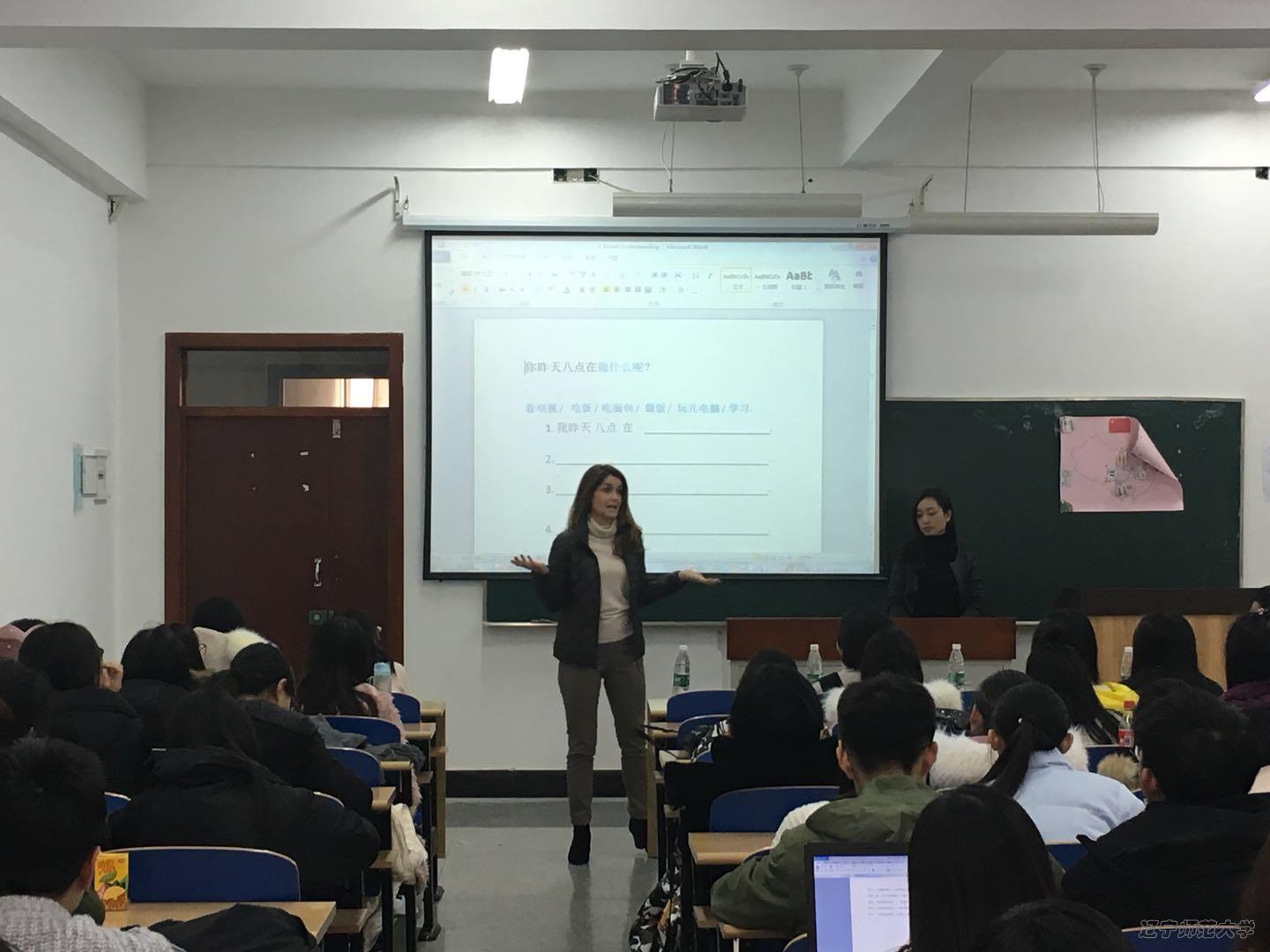 访问期间索蕾女士为文学院汉语国际教育专业的大二\大三的学生作了西班牙儿童汉语课堂的示范课,赵女士做了关于西班牙高等教育及赴卡米亚斯大学留学等方面的情况说明,并详细地回答了学生的相关提问。