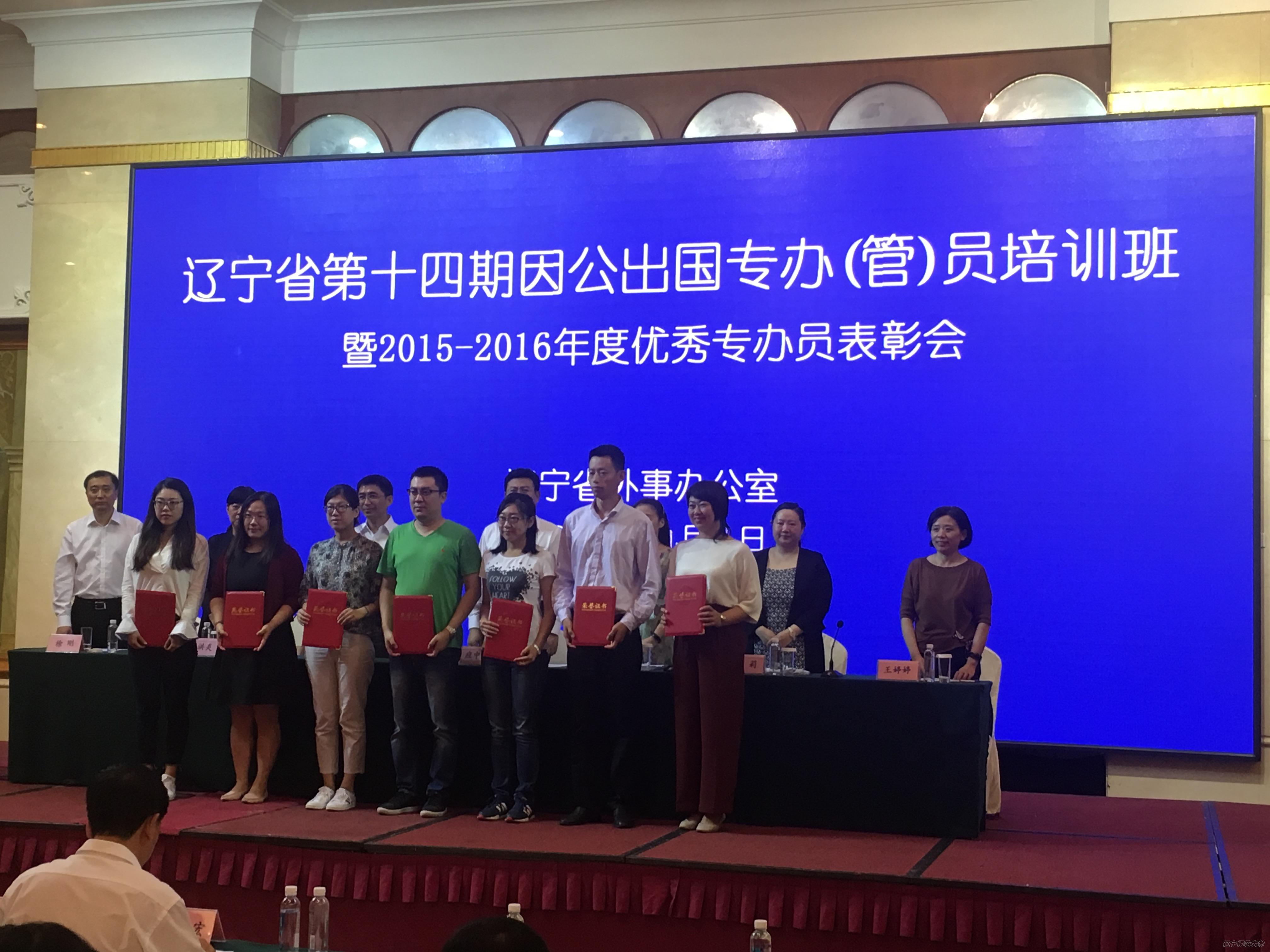 为了更好地开展因公出国(境)工作,本次会议共评选出全省2015—2016年度优秀专办员28名,我校国际交流处专办员蒋开萍在因公护照签证工作中认真负责、成绩突出,被评为本年度“优秀专办员”,在表彰会上代表我校领取了荣誉证书。